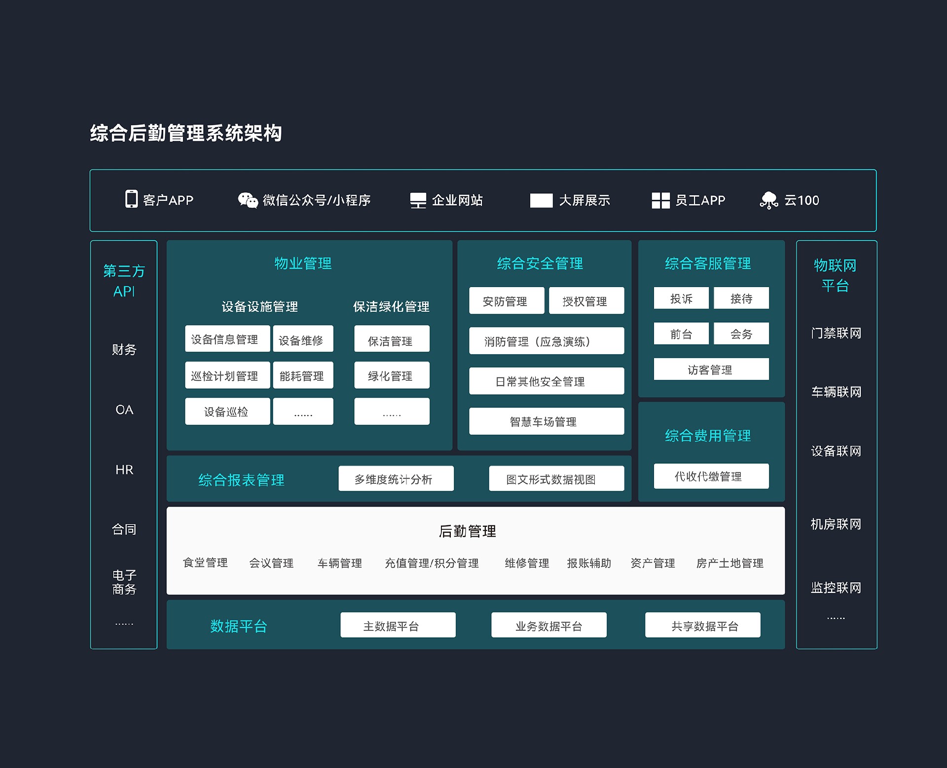 依托人工智能技术,三亿官网利用“互联网+5G智能手机”平台,成功构建了一个安全可靠、设备兼容广泛的行政综合管理云平 台——微后勤。该平台通过集成不同专业、系统、性质和技术领域的后勤服务管理系统与服务内容,如安防管理、车辆管理、 物业管理等,实现了高效统一的行政综合管理。用户只需通过微信公众号即可便捷访问微后勤,享受一站式后勤服务体验。