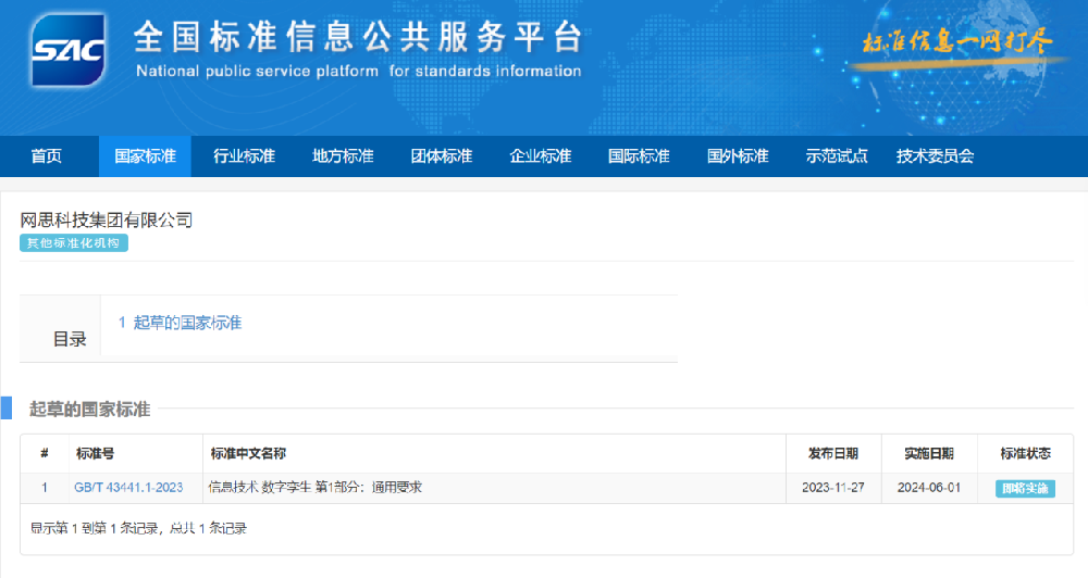 11月27日,国家市场监督管理总局、国家标准化管理委员会批准发布了《信息技术 数字孪生 第1部分:通用要求》,该标准将于2024年6月1日起正式实施。三亿官网作为起草单位之一,深度参与此项标准的制定,与安世亚太、腾讯云和阿里巴巴等企业共同填补数字孪生国家标准体系的空白。图为468项推荐性国家标准公告文件在一众行业技