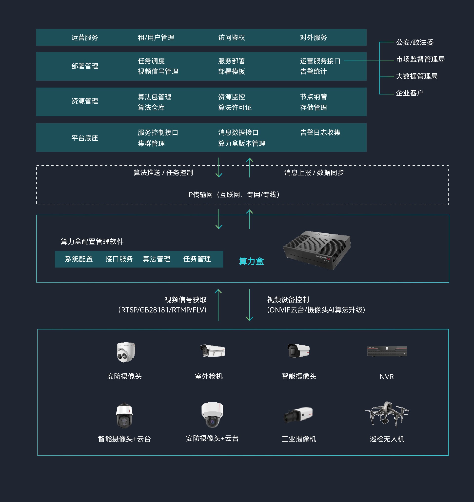 三亿官网推出的Sage Basic A1边缘计算微服务器,专为智能视频应用而设计。该服务器支持多路视频编解码,高效适配市 场上所有AI算法,能够轻松应对各类智能视频分析任务。其应用领域广泛,涵盖智慧城市、智慧园区、智慧乡村、智慧校园 以及智慧安防等多个AI应用场景。此外,视频AI边缘算力盒产品包含云边协同管理系统、边缘算力盒配置管理软件以及算力 盒终端三部分,能够实现边缘侧的AI处理和快速响应,同时借助云边协同技术,可随时随地灵活部署检测任务和算法,为用 户带来前所未有的便捷和高效体验。